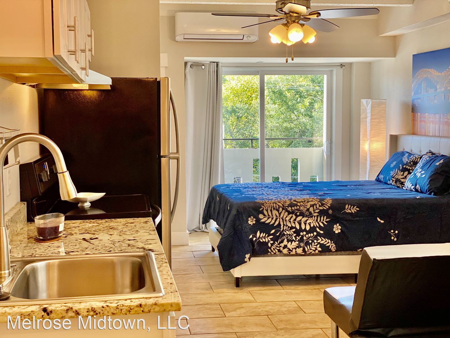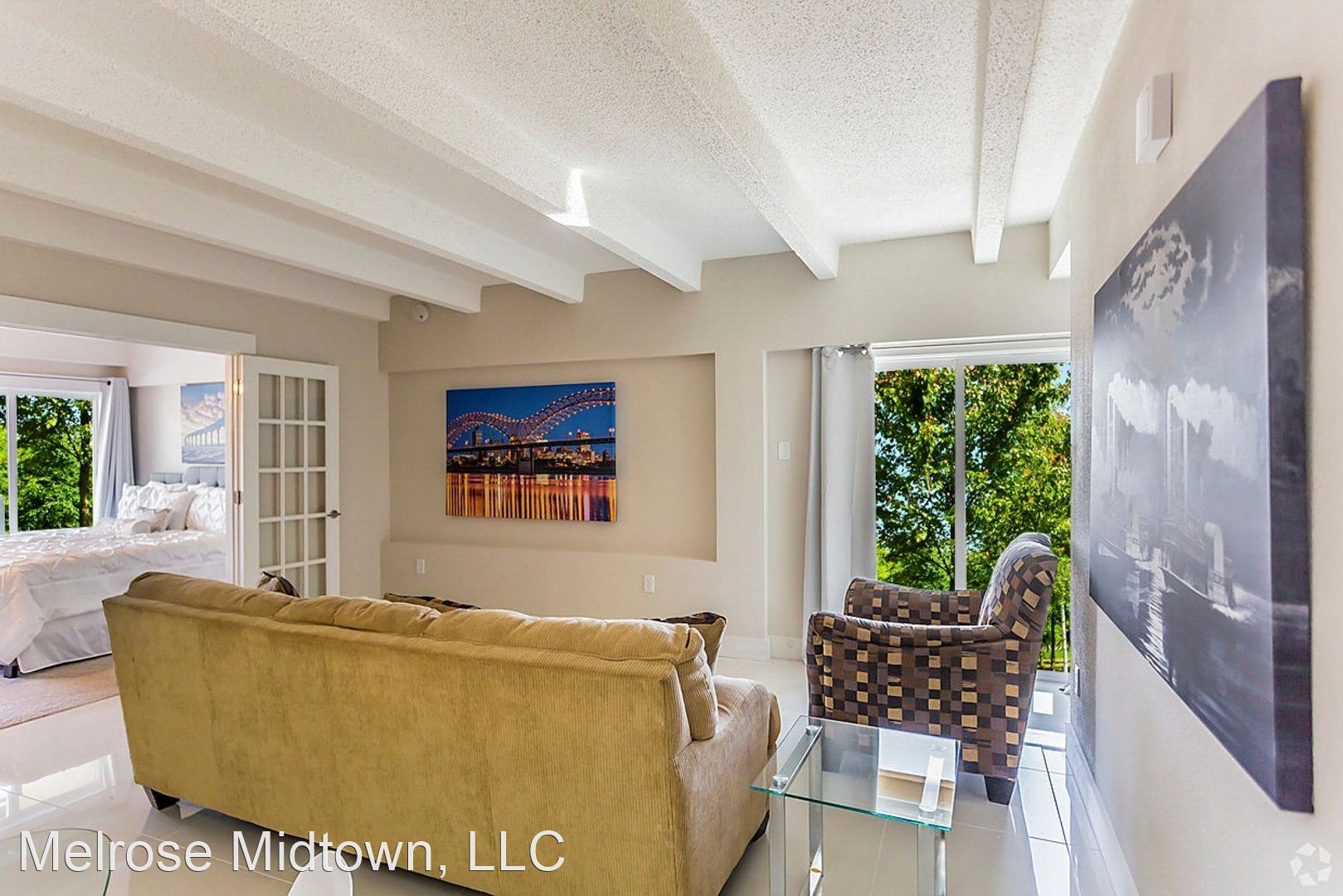 The Alisa - A large and beautiful apartment, the Alisa is perfect for couples, roommates, or professionals who need a home office. The floor plan links two oversized bedrooms with a common great room. All Alisa apartments enjoy warm sunshine, with extra-deep balconies that invite you outdoors year-round. Each Alisa bedroom has an “en suite” full bath with tub, commode, vanity, vanity mirror, vanity lighting, and a very big closet. Closets are either large walk-ins or very large dressing-chamber style closets, with nearly 50 feet of closet rod hanging space! Most Alisa apartments also offer a bonus linen closet. Kitchens feature granite countertops, new stainless appliances, disposals, basin sink, pantry, backsplashes, and heaps of cabinet storage. If you're ready to move, we’re ready to meet you! Take a tour and find out why the Melrose won this year's award for Best Apartment Community in Memphis! Please note that prices are higher on the north side of the Melrose and on higher floors (including penthouse).